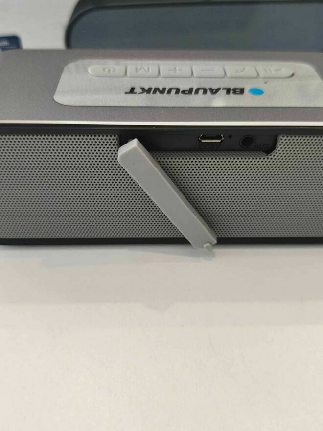 Głośnik posiada również złącze AUX do podłączenia wszelkich innych źródeł dźwięku. Gniazdo microUSB służy jedynie do ładowania wewnętrznego akumulatora.