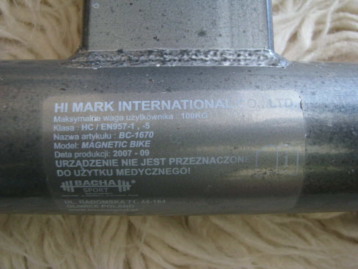 Rower posiada również antypoślizgowe nóżki (aby nie rysowały podłogi nałożone zostały na nie opaski filcowe, które można zdjąć), na pedałach zamocowane są paski utrzymujące stopy na miejscu.
